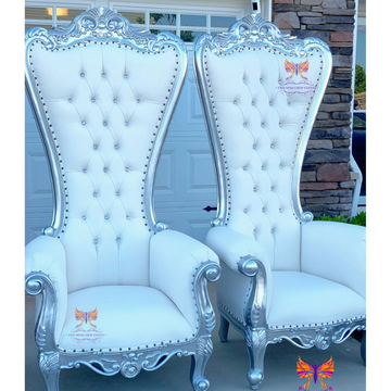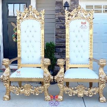 These one of a kind, beautifully chiseled, high back chairs are true works of art and will leave your guests or customers in complete awe!!! Perfect for Weddings, Quinceaneras, Sweet 16s, Graduation Parties, etc.! Let us help add that little touch of royalty to any event.